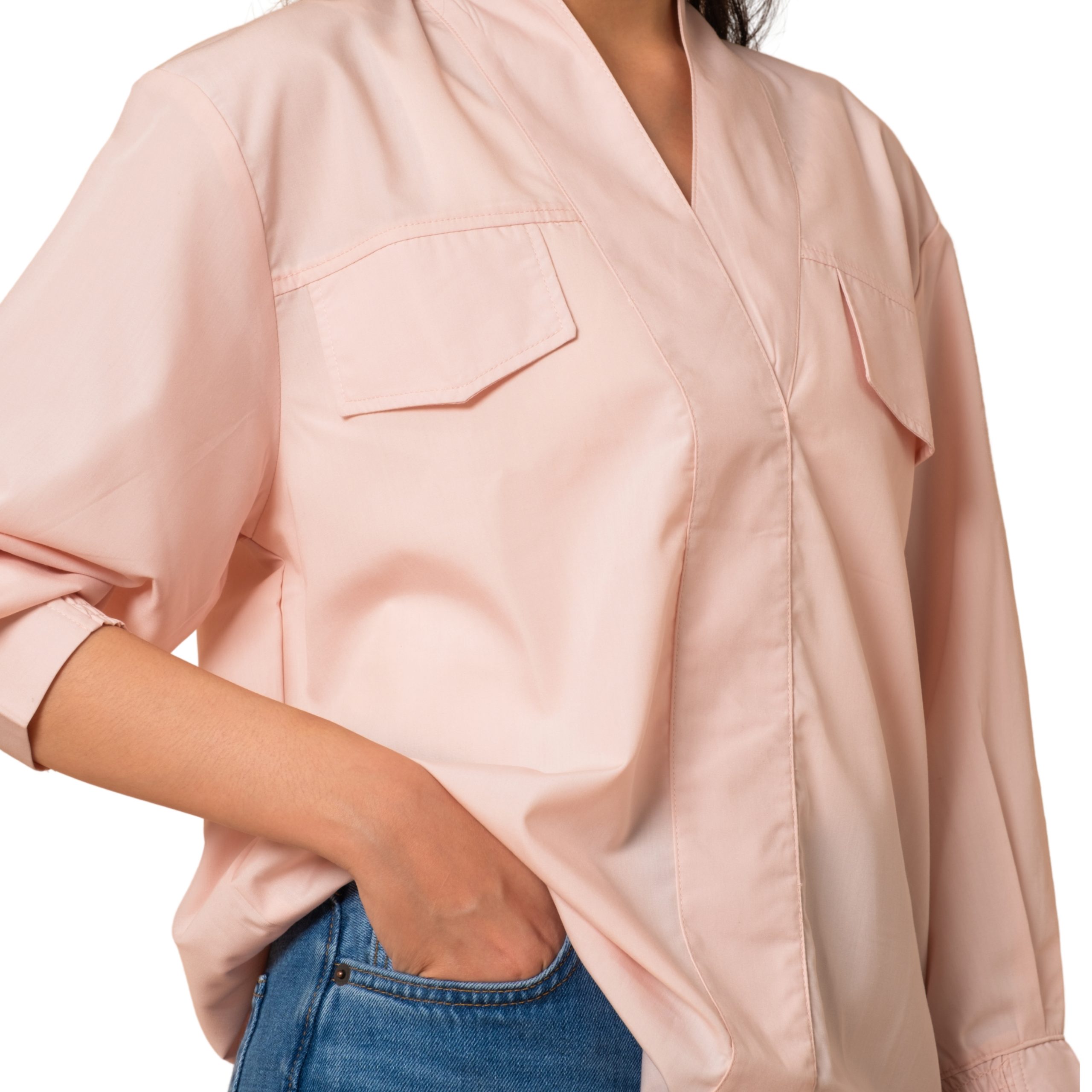 The Masa Shirt is a versatile top with a stylish V-neck design, accented with pocket details and distinctive cuff finishes. Made from high-quality cotton with a subtle stretch texture, it offers breathable comfort, ease of movement, and a consistently polished look throughout the day.