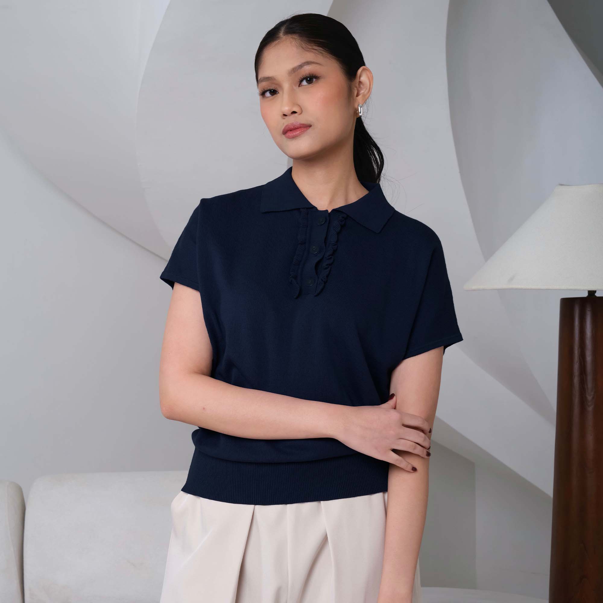 The Rona Polo is cozy knitwear that combines comfort with playful elegance. Ruffle detailing along the button placket adds a feminine touch, while batwing sleeves create a relaxed, oversized silhouette with a modern feel.