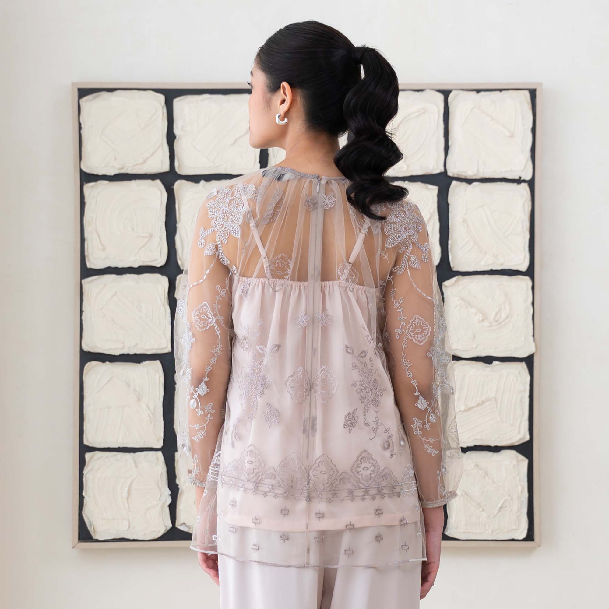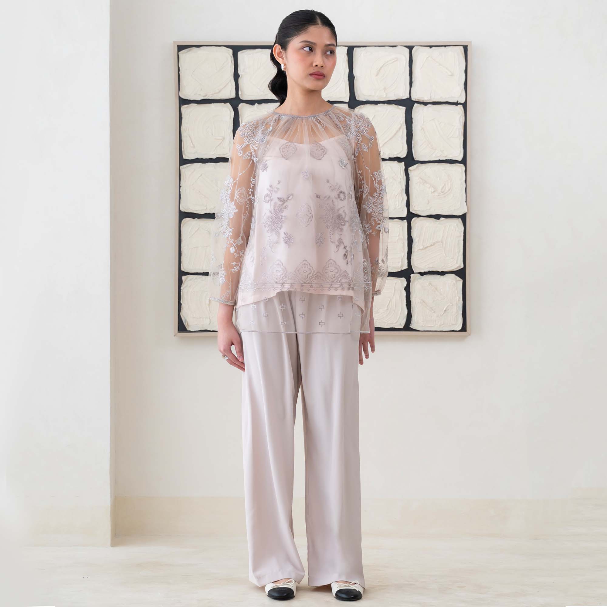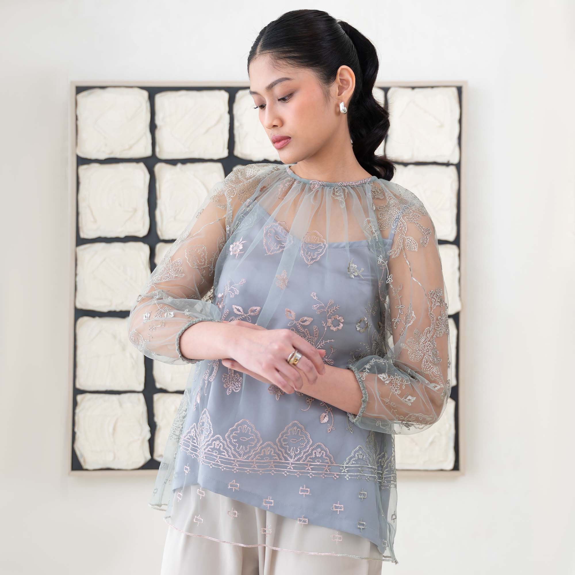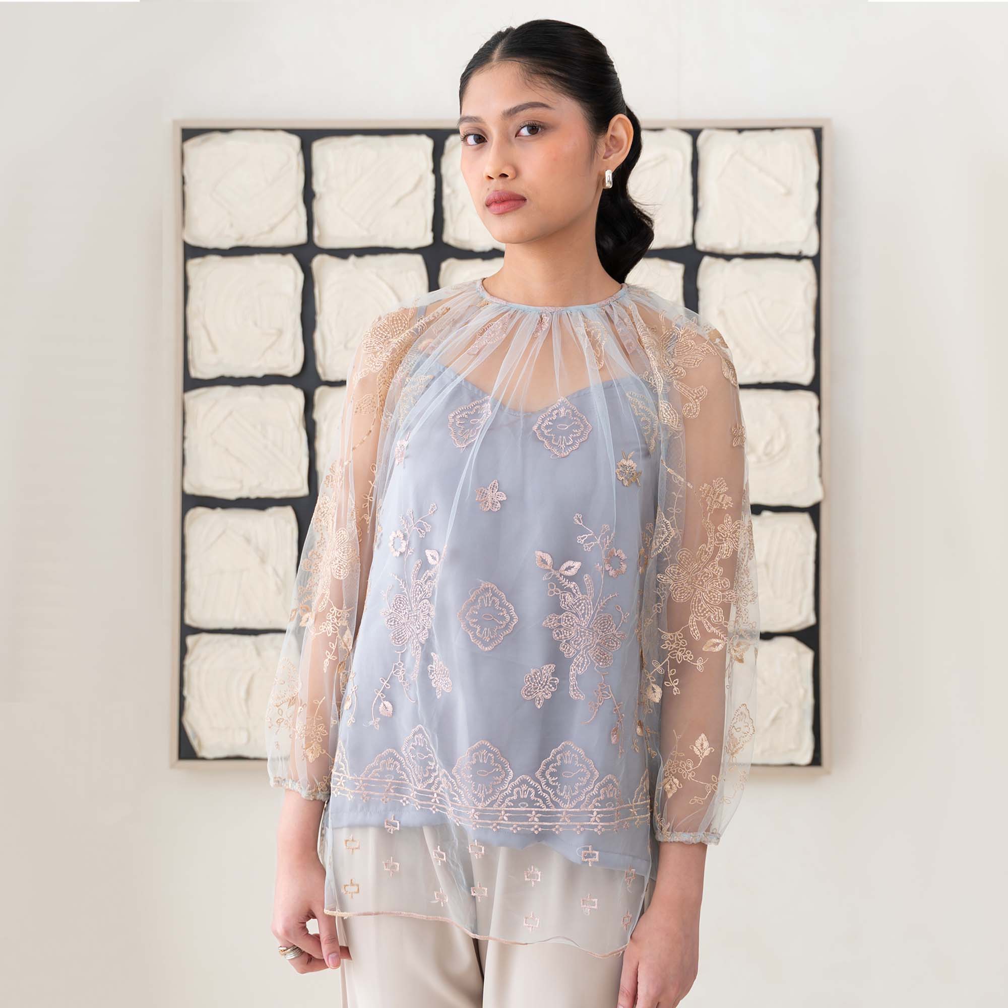 This tulle top features a romantic ruffled neckline. Crafted from lightweight, sheer tulle, the raglan sleeves add a modern touch. This top transitions seamlessly from day to evening.